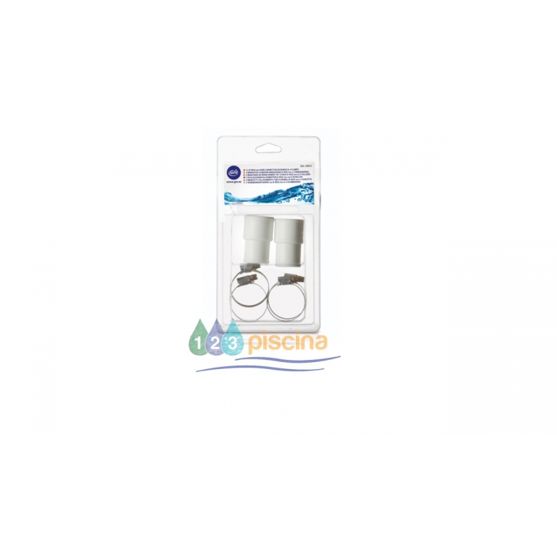 Kit compuesto por 2 manguitos conectores y 4 abrazaderas incluidas. Estos conectores permiten unir 2 mangueras flotantes entre sí con facilidad. Abrazaderas de acero inoxidable con rosca helicoidal, para un alto grado de ajuste.